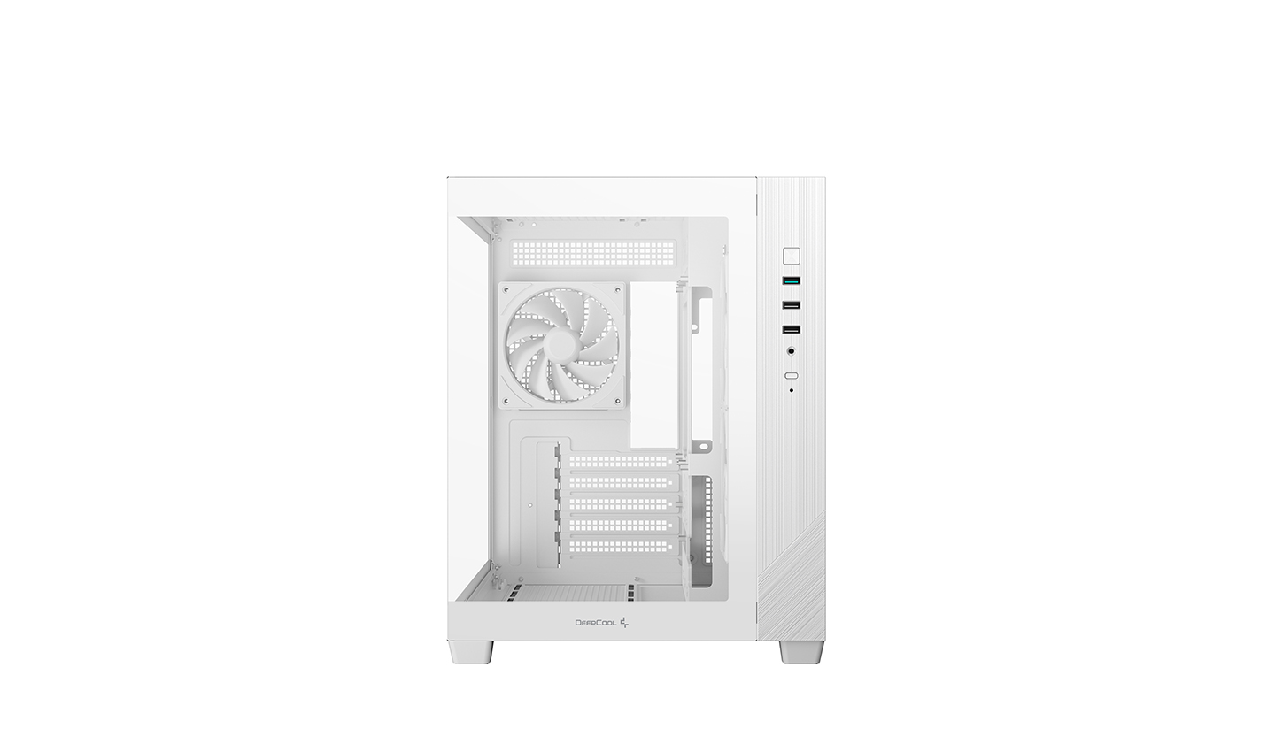 CG330 3F WH, kompakt bir alanda sütunsuz ön tasarımı ile geniş görünümlü bir yan panele sahiptir. Ters konnektörlü anakartlar için destek, kabloları gözden uzak tutarak temiz, kesikin ve derinlikli bir görünüm sağlar.